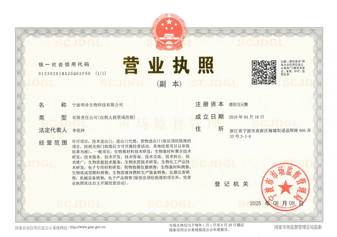 賬戶名:寧波明舟生物科技有限公司