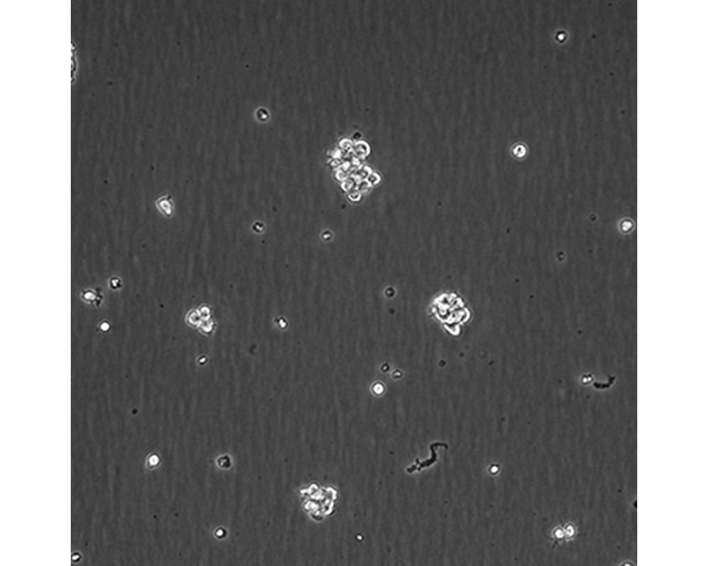 如果細胞密度達80%-90%,即可進行傳代培養。1. 棄去培養上清,用不含鈣、鎂離子的PBS潤洗細胞1-2次。2. 加2ml消化液(0.25%Trypsin-0.53mM EDTA)于培養瓶中,置于37℃培養箱中消化1-2分鐘,然后在顯微鏡下觀察細胞消化情況,若細胞大部分變圓并脫落,迅速拿回操作臺,輕敲幾下培養瓶后加少量培養基終止消化。3. 按6-8ml/瓶補加培養基,輕輕打勻后吸出,在1000RPM條件下離心4分鐘,棄去上清液,補加1-2mL培養液后吹勻。4. 將細胞懸液按1:2到1:5的比例分到新的含8ml培養基的新皿中或者瓶中。 |